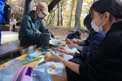 ほうとうづくりでは、火起こし・調理を分担して行いました。