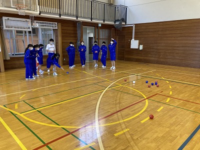金曜日にA組・I組と一緒にボッチャ交流会を行いました。ボッチャは「氷上のチェス」とも呼ばれるカーリングに似ている競技で、戦略性に富んだスポーツです。ボールをどこに投げるかをチームで話し合い、楽しんでいる姿が多く見られました。また、普段関わることの少ないI組の生徒ともチームを組み、交流を深めることもできました。