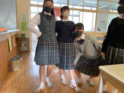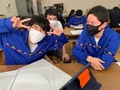昼休みは、「バレーのポーズ」と言いながら2人の生徒がポーズをとていました。