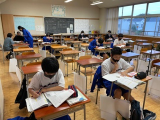 昨日に引き続き、自習・質問教室を使って、学習を進めています。