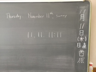 3時間目の途中で11:11になりましたので、一瞬ポッキーポーズ!この後、しっかり本文の内容を復習しました。(松田)