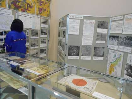 正面玄関直ぐの一角で資料パネルや実際の生活・軍事物品の展示が行われています。