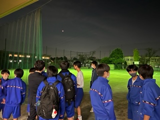 各部活のミーティング後学校のグラウンドから皆既月食を見ることができました。