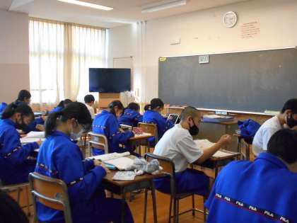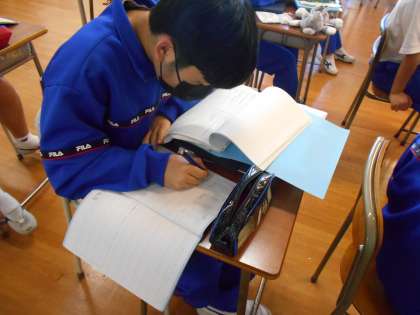 今日の課題が早く終わった生徒は、再度ノートやワークの確認をしていました。