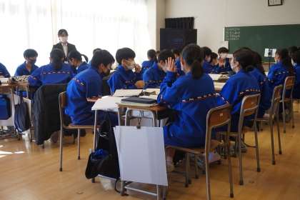 発表では、それぞれ同じ文なのに、班によって気持ちの込め方や言い方が異なっており、生徒は皆お互いの発表を興味深く聞いていました。