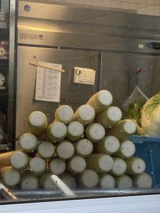 これからこの大量の大根たちと闘う給食さんの闘志みなぎる様子がこの写真から伝わりますね。