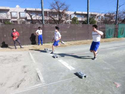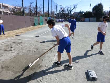 3時間目の体育では、校庭で走り幅跳びの記録測定を行っていました。