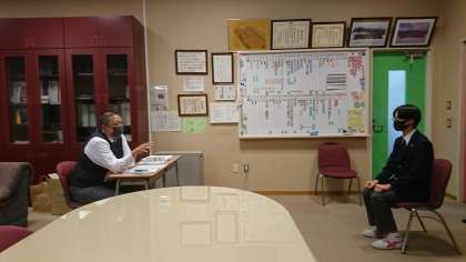 毎年この時期になると、3年生全員が校長先生と個人面接の練習をします。