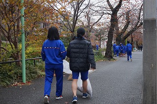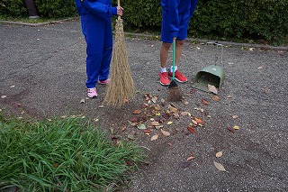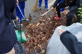 今日は雲が多い空となり、気温も上がらず寒い朝でしたが、生徒は清掃活動に一生懸命に取り組んでいました。