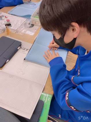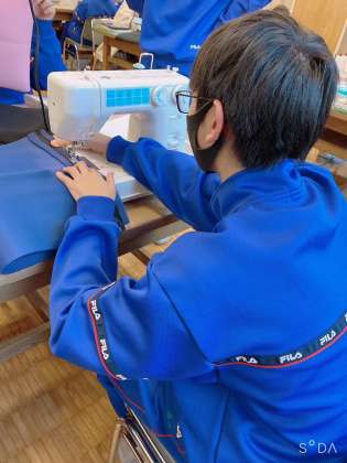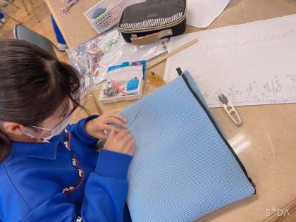 現在、家庭科の授業ではメッシュポーチを制作しているようです。