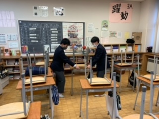 今日の放課後、教室掃除では机を運ぶ時、2人の生徒が息を合わせて、素早く運んでいました。いいですねぇ!「楽しむ」が大事ですね。