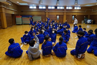 2学年のボッチャ交流会では、体育館でのボッチャの試合と並行して、武道場での交流会も行いました。