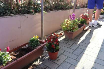 このままでは冬を越せないお花を温かい教室へお引っ越し。