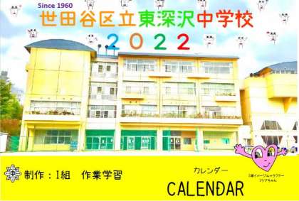 このカレンダーはデザイン、表紙の写真、キャラクターなどすべてI組の生徒が考案し、授業で学習したパソコンの技術を生かして作成しました。