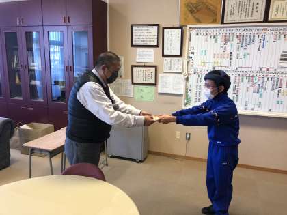 カレンダーを届ける際には、お辞儀の練習、姿勢、表情、挨拶など、事前に学習したビジネスマナーを生かしてしっかりと届けることができました。