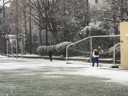 校庭に雪が積もっていました!