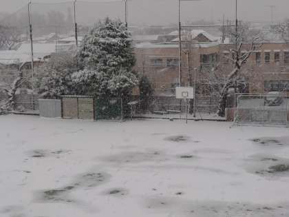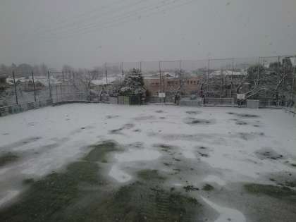 本日1/6午後4時すぎの校庭が雪で覆われて来た様子です。