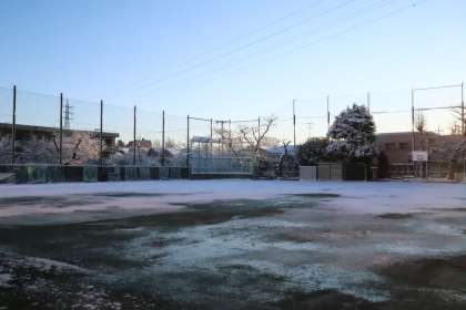 昨日降った雪と朝陽で、本校校庭はご覧の通りとってもきれいな雪景色に!!