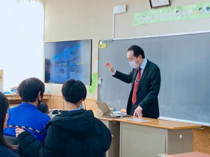 D組は都立第一商業高校の平野篤士校長先生に商業の授業を行っていただきました。