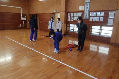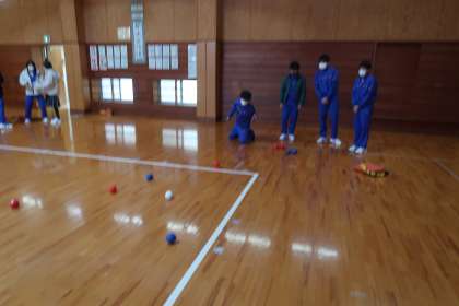今週は火水木の昼休みに「めっちゃバドミントン」「めっちゃボッチャ」が行われています。今日はI組からもめっちゃボッチャに参加しました。