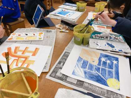 みんなの作品を見ていると、絵の具の色をそのまま使わずに、自分の表現したい色をつくっているところが素晴らしいですね!