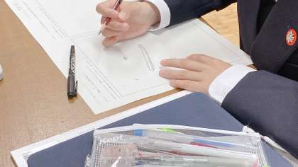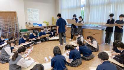 初めての美術室での授業!広い教室になんだかそわそわしている様子でしたが、しっかりと美術室でのルールを確認して作業します。