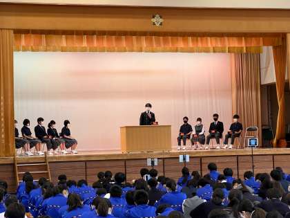 2・3年生は体育館にて、1年生はオンラインでの参加でした。