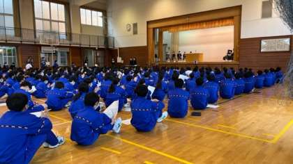 生徒総会の様子です。東の伝統となっているみしまのもり6ヶ条に、今年度からあいさつ4ヶ条が加わり、全員で唱和しました。生活委員長の声かけに気合いが入りました。これからも、普段から元気よくあいさつを行っていきましょう!(松田)