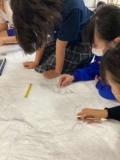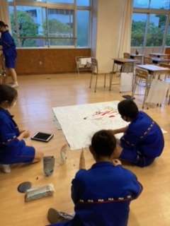 放課後の2年生有志たち、体育祭の各クラスの応援旗を作っている様子です。どのクラスのデザインも力作なので、大きな無地の旗に書き写すのは、時間と神経を使います。「消しゴムを今日だけで半分以上使いました!」片付けをしている時に話してくれました。おつかれさまでした。完成がとっても楽しみです!