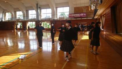 ダンスは、体育の授業だけでは振り入れが間に合わないので、毎年朝練、昼練をしています。今年度は今日から朝練開始。