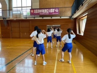 グループに分かれて、ダンス部の生徒が動きを教えています。