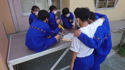 今日の昼休み、校庭では3年生の体育委員が体育祭の打ち合わせを行なっていました。