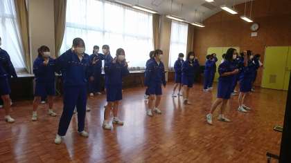 ミーティングルームでは、3年生のダンス選択者が昼練をしていました。