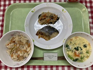 今日は、旬のたけのこを使った「たけのこごはん」です。