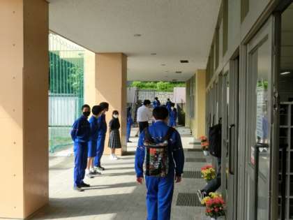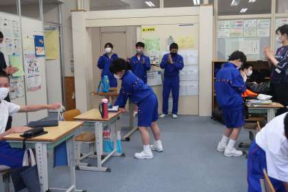 D組の生活委員が挨拶すると、元気のよい挨拶が返ってきます。