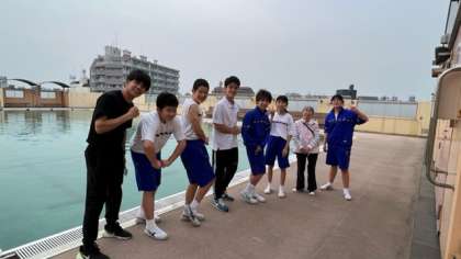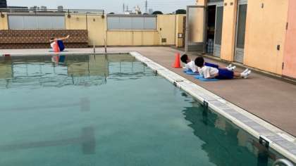 水泳部です!今日はプールサイドでのサーキットトレーニングを行いました。また、本校の体育講師であり、外部監督の西村茉朗先生が都立の高校で教員として働くことになり、本日が最後になりました。短い時間でしたが、大変お世話になりました!(松田)