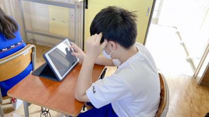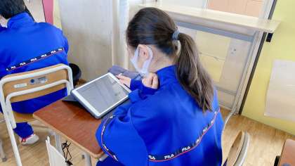 朝読書の時間に、学習用タブレットを活用してキュビナ学習に取り組みました。