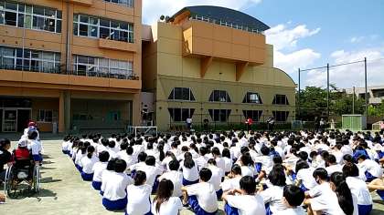 体育祭全校練習がはじまりました!大変良いお天気のもと、ラジオ体操の隊形や観覧席の確認をすることができました。