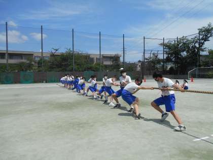 2年3時間目の学年練習は、「希綱引き」でした。希望の綱を引くこの競技、パワーが必要です。今日はB組さんが2勝で優勝でした!作戦が上手く行ったクラス、練習は相手の様子を見て、本番に向けて戦略を考えるクラス、さまざまです。本番まで、出し惜しみをせず全力で頑張ってください!