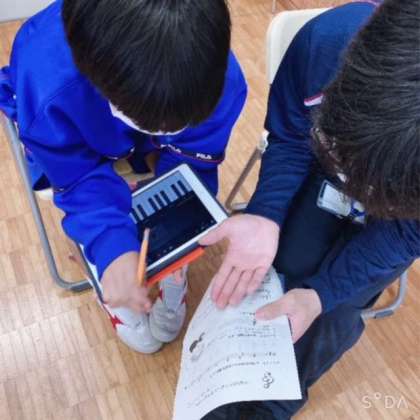 決められたルールでの創作活動ですが、皆んなガレージバンドを開いて頑張って取り組んでいます。
