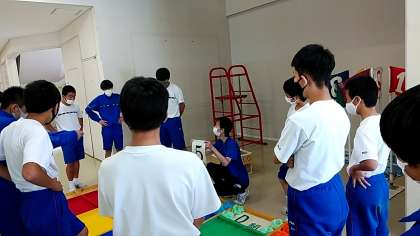 体育祭成功のためには、とても大切な仕事です。みんな集中して話しを聞いて、積極的に準備に取り組みました。