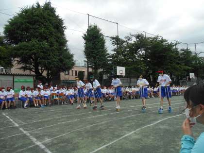 本日の体育祭予行練習。写真は、「人生いろいろ」、「愛のラケットリレー」からです。飛んだり走ったり、笑顔もこぼれて、みんな大活躍でした。