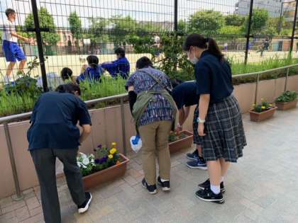月曜日の昼休みは花ボランティアを行なっています。