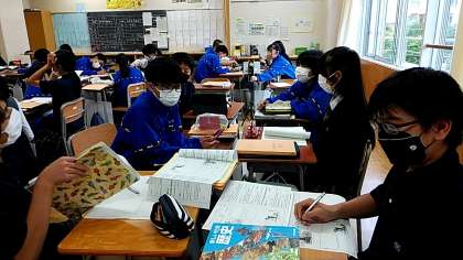 今週2年生の歴史の授業では、フランス革命の理解をさらに深めるために班ごとに寸劇を考え発表する学習をしています。