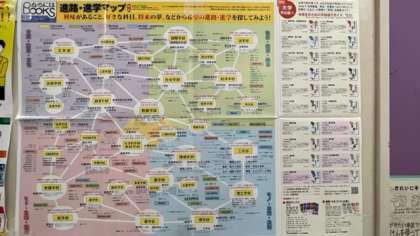とあるポスターが目にとまりました。大学の学部から将来やってみたいことを探るマップです。本校でも今週より、進路説明会の動画が公開されています。進学先の高校を決める際も、大まかでよいので、将来やりたいこと、高校でやってみたいことを考えてみてください!(松田)