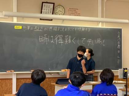 学発実行委員や選挙管理委員を決めるにあたって、様々なことをチャンスだと思い、挑戦してみてくださいとみんなに伝えてくれました。