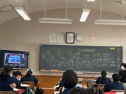 ?今日は河口湖移動教室のガイダンスを行いました。熱中症対策のため、1年D組から各クラスにzoom配信で行いました。