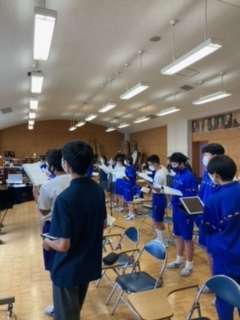 次は「糸」を新しく歌うことになりました。譜面を配っている間に、急遽みんなのリクエストでこの曲を歌ってくれたのは体育科の平野先生です。ピアノの生演奏に合わせ美声が響き渡りました。