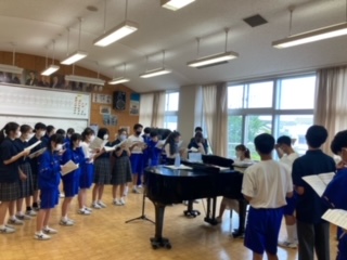 6時間目、音楽室で2Aが「手紙」を歌っていました。歌詞の内容が伝わってくる気持ちのこもった歌声に、学校公開で来てくださっていた保護者の方々も足をとめて、聴き入ってくださいました。