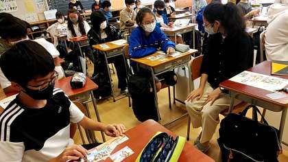 友達の家に集まっている写真、デートの写真、クラスメイトとの写真、部活動の写真、よくいくお店の写真の5種類のカードから、「1番人に見られたくない写真はどれですか」という問いから始まりました。5枚のカード、それぞれに手が上がりましたね。人によって感じ方は違うということがわかりました。